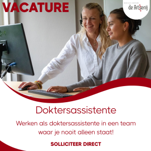 Wij zijn op zoek naar een nieuwe doktersassistente om ons gezellige team te versterken. Kijk voor meer informatie of om te solliciteren op: